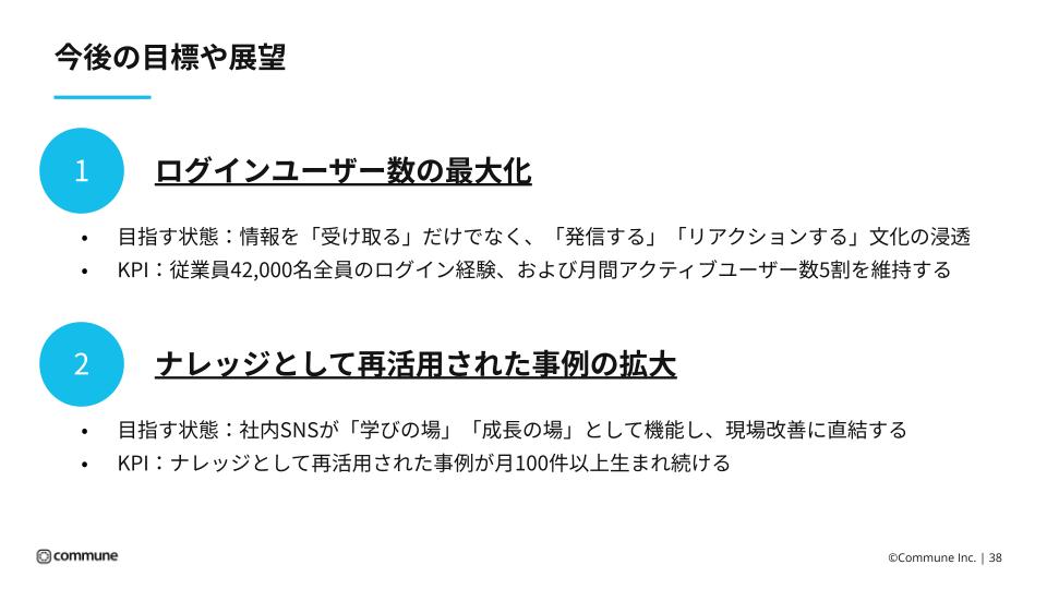 今後の重点目標は2つ。 1つ目は、ログインユーザー数の最大化です。