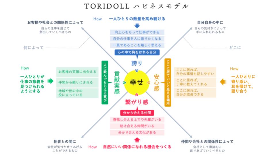 具体的には、働く人の幸福(ハピネス)を構成する4つの要素「安心感」「つながり感」「貢献実感」「誇り」に着目。これらを高める職場文化とコミュニケーション施策を設計し、「会社が好き」「お店が好き」「仲間が好き」といった前向きな感情の連鎖を生み出すことを目指しています。