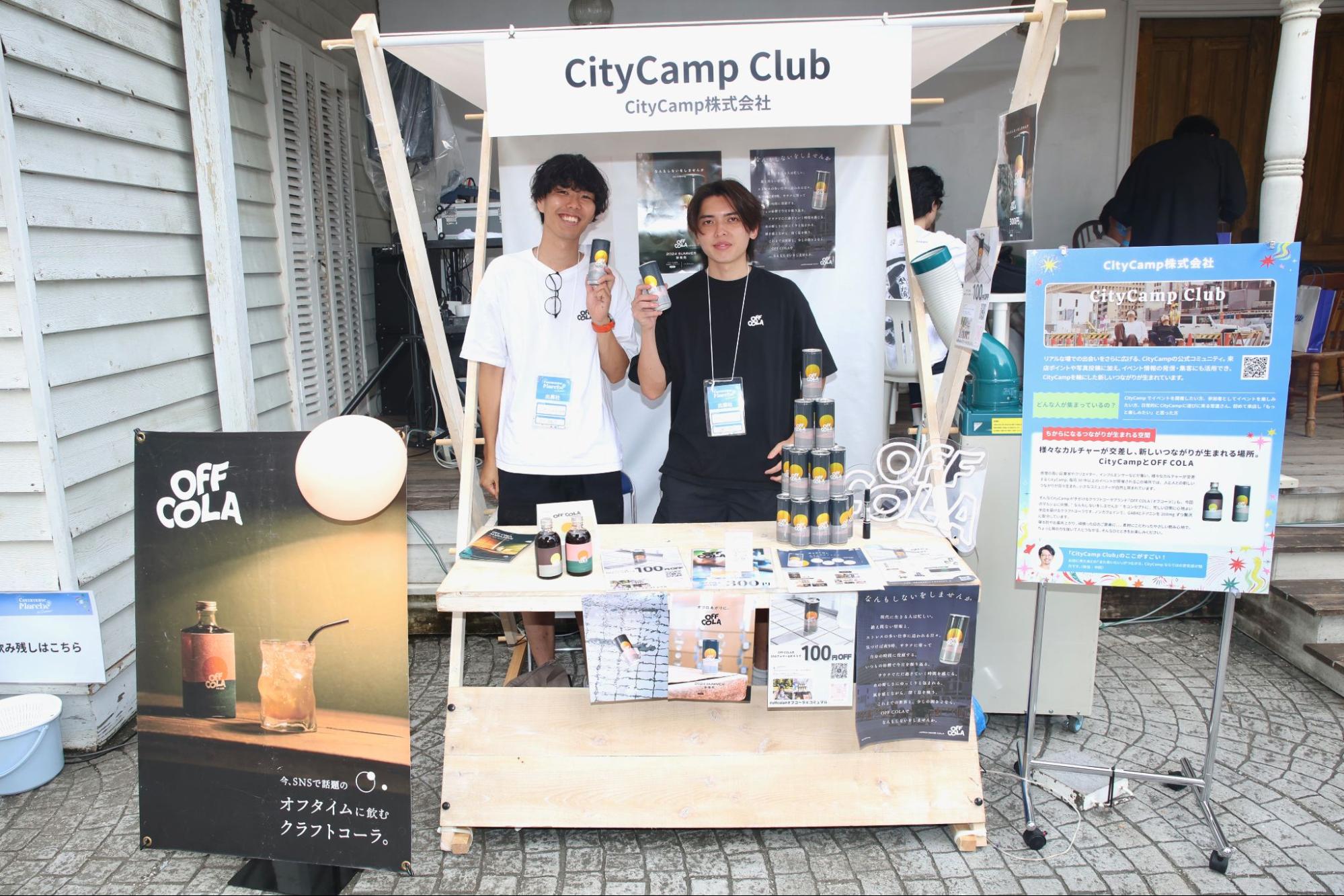 都市とアウトドアカルチャーを融合させるCityCampの公式コミュニティ「CityCamp Club」。会場ではクラフトコーラ「OFF COLA」を販売、リアルとオンラインが自然につながりカルチャーを共有する空間として来場者の共感を集めていました。