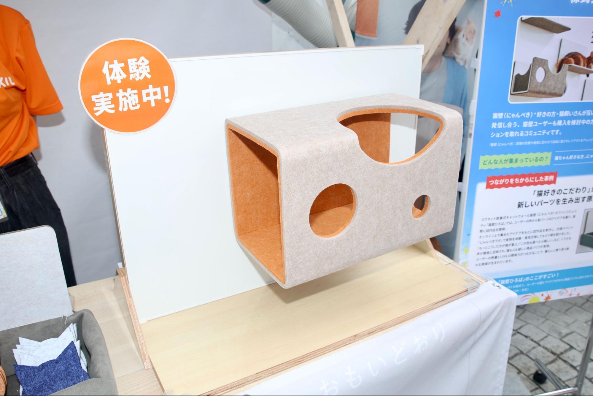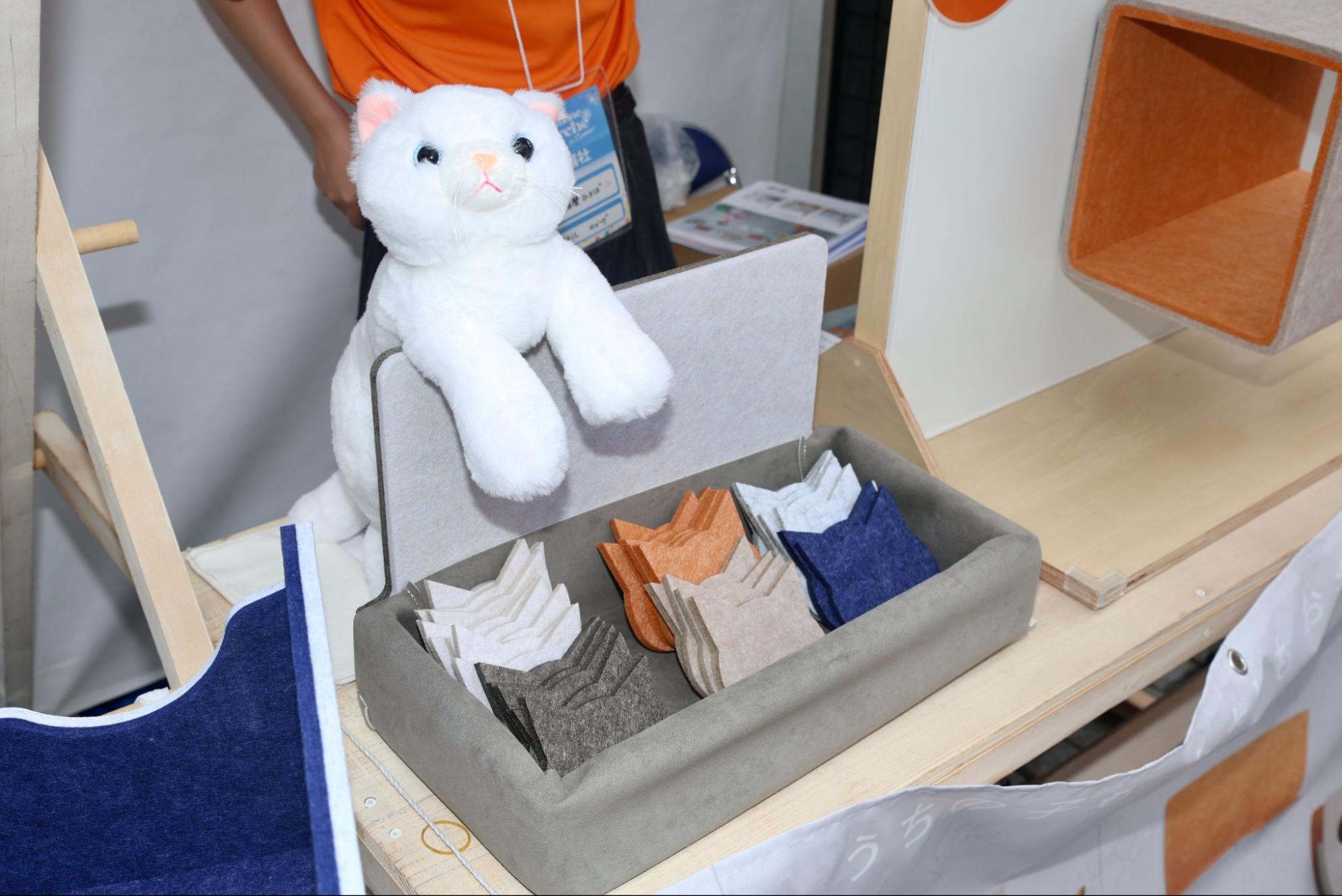 ブースでは実際のパーツ展示が行われ、「高さを変えられるのが便利」「うちの猫にも使ってみたい」と来場者が熱心に撮影する姿が見られました。