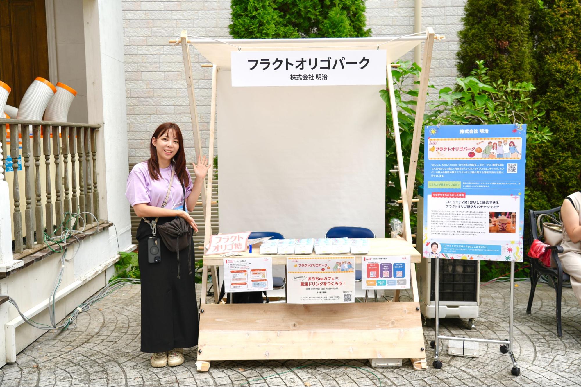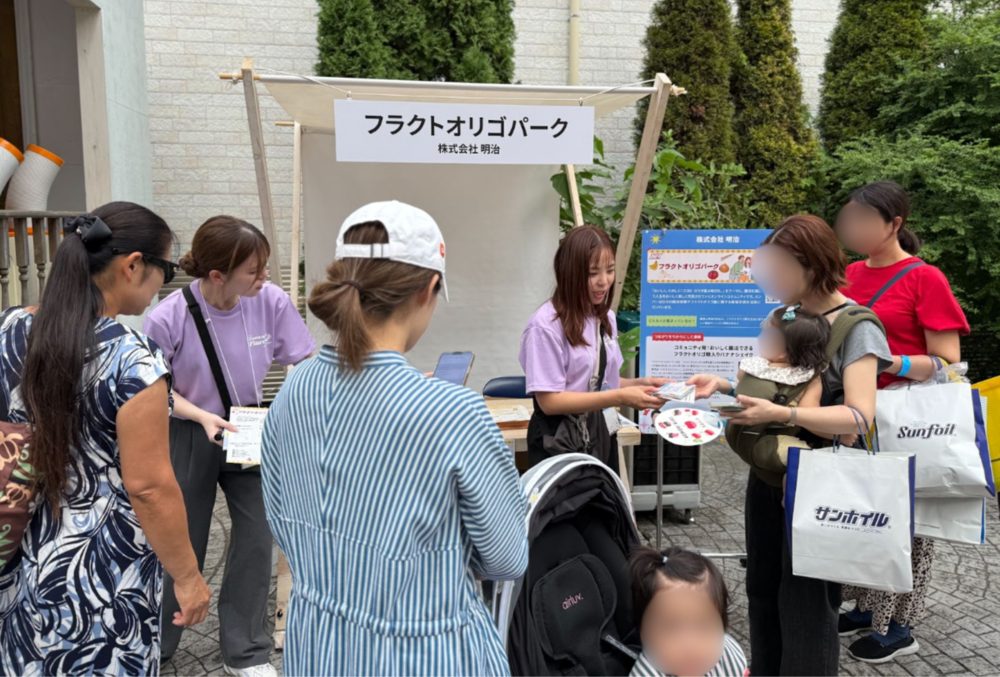 腸活をテーマに、フラクトオリゴ糖を中心とした健康習慣を広げる「フラクトオリゴパーク」。ブースでは、フラクトオリゴ糖の14日分の試供品とグミが配布され、健康への意識が高い来場者同士が情報交換をする様子も。
