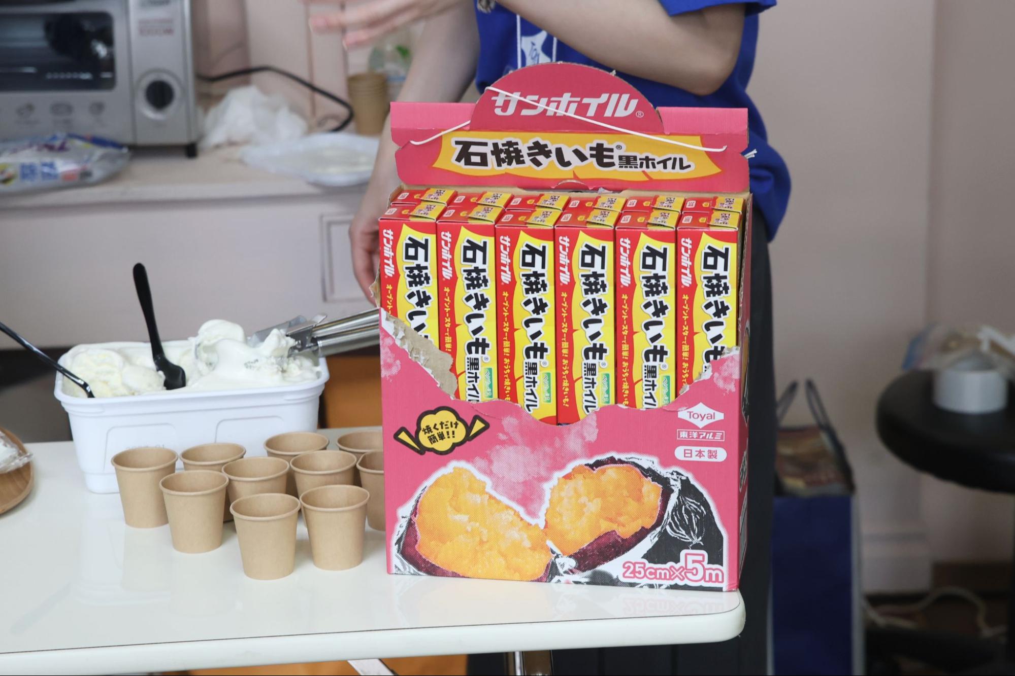 ファンミーティングでは、「石焼きいも®黒ホイル」を使って作った焼きいもを試食しながら、ファン同士、商品やコミュニティについて語りました。