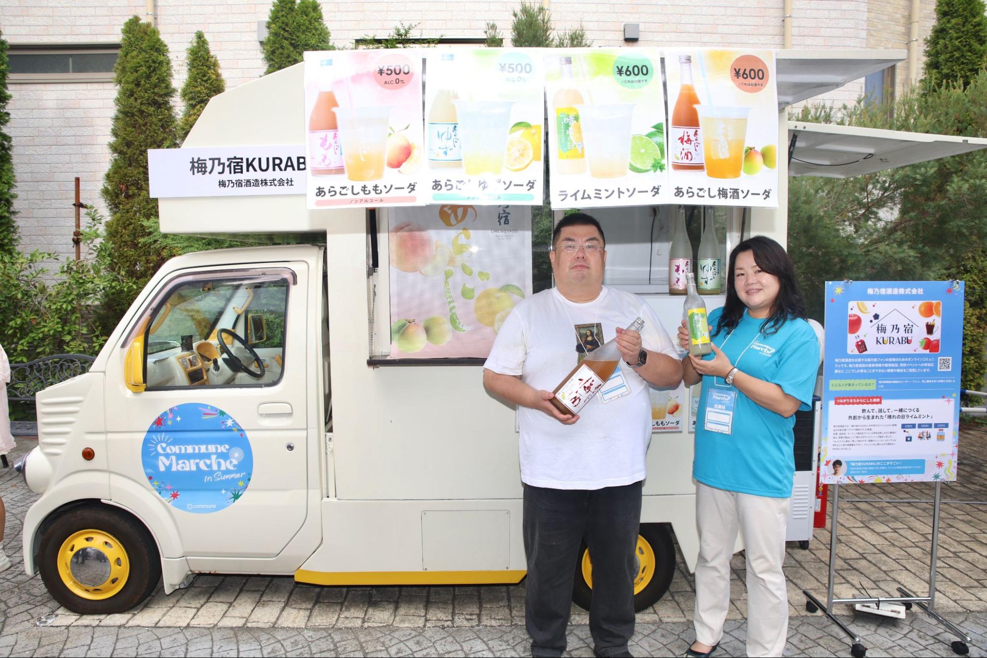 梅酒や果実酒で知られる梅乃宿酒造のファンコミュニティ「梅乃宿KURABU」。ブースではコミュニティユーザーとの共創商品「晴れの日 ライムミント」などのドリンクも販売。人気のノンアルシリーズが提供され、多くの来場者でにぎわいました。
