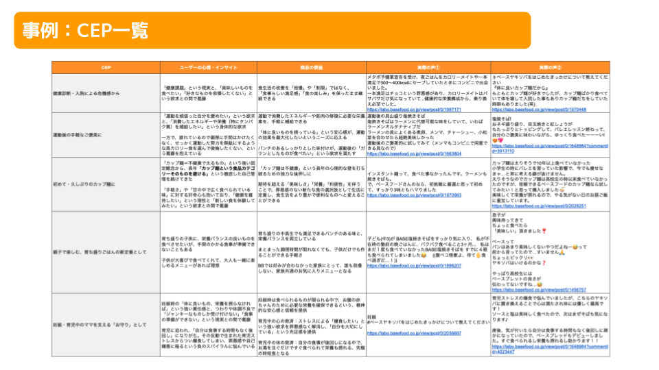 斎藤:またベースフード様では、コミュニティ内VoCを活用したCEP(カテゴリーエントリーポイント)の分析も実施させていただきました。